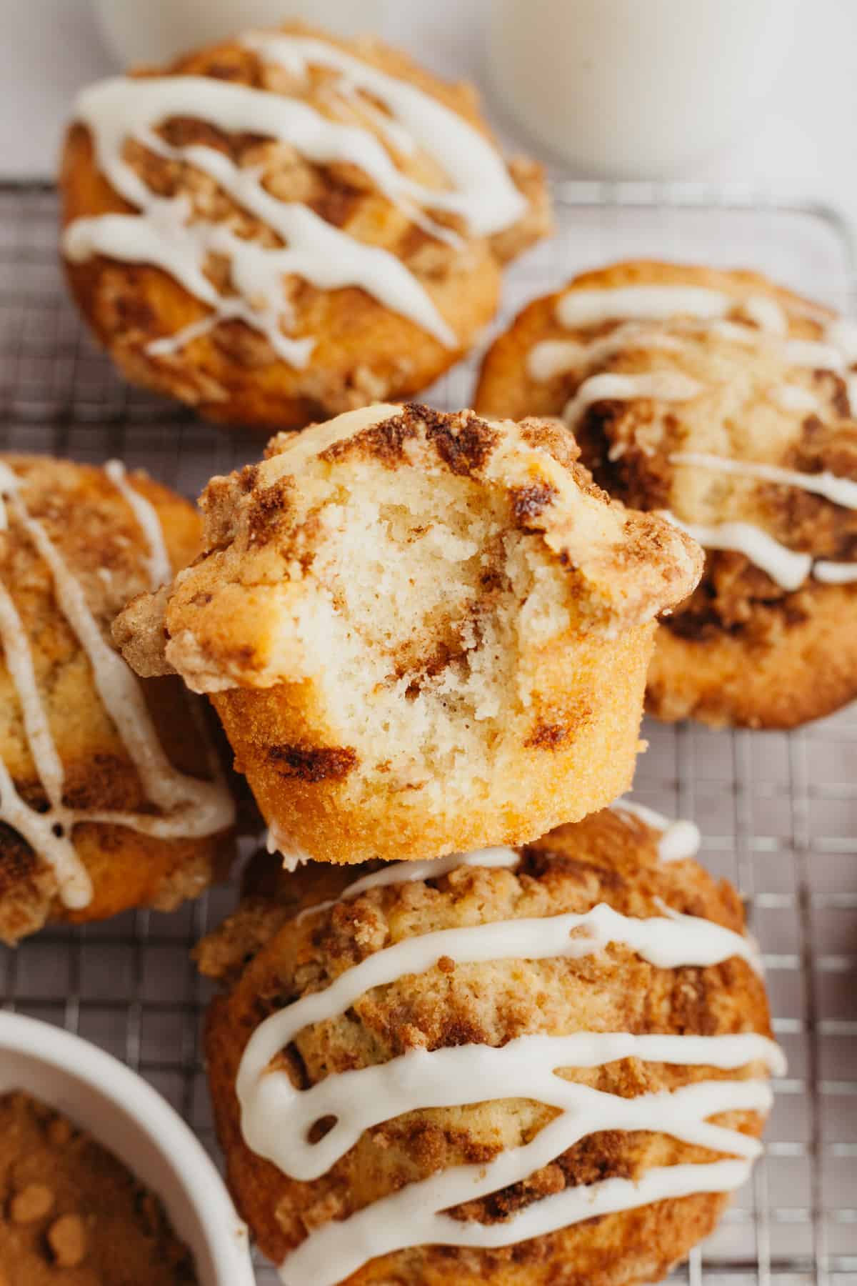 - Spoon about 1 teaspoon of the cinnamon swirl mixture over the batter in each cup. Swirl gently with a toothpick.