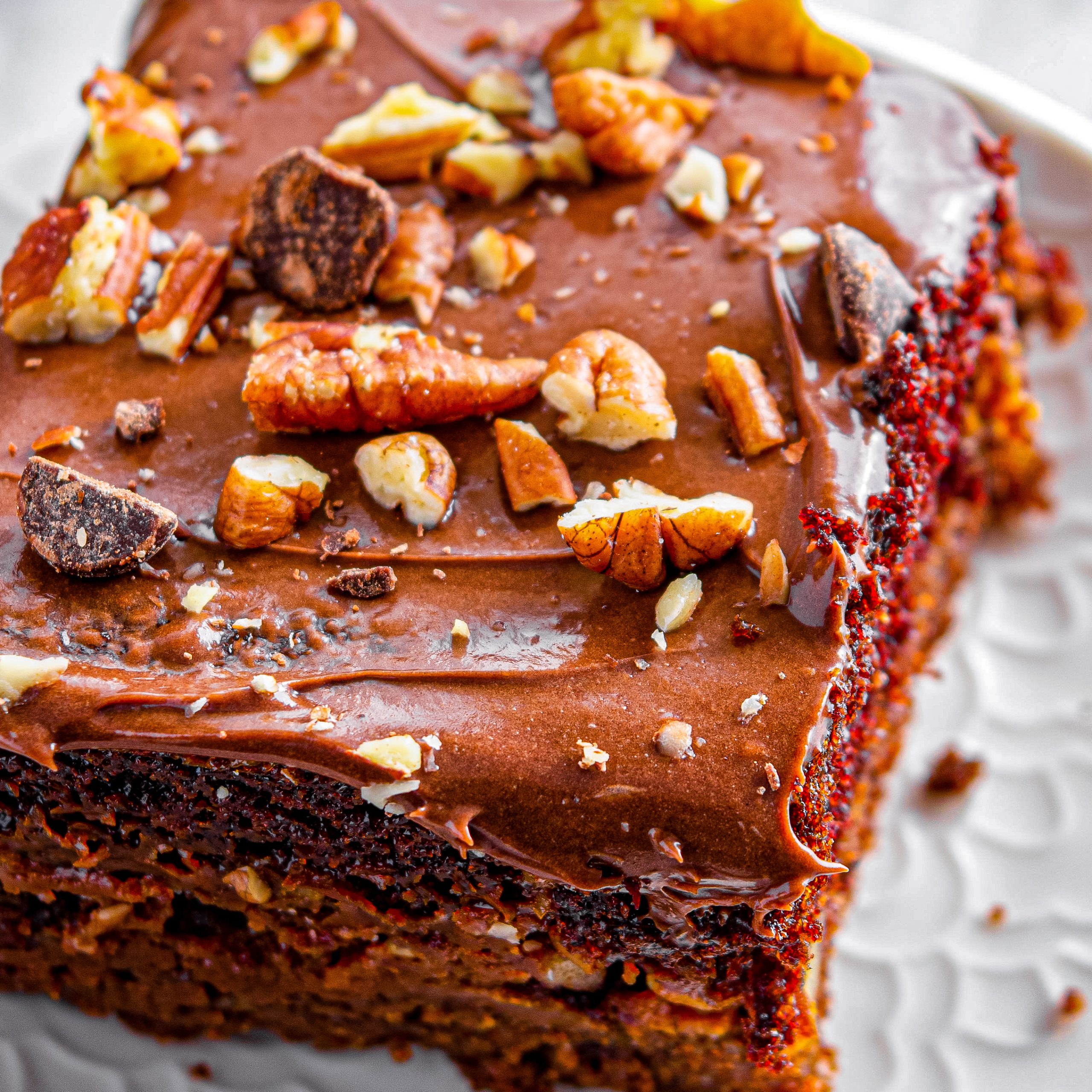 - Sprinkle the remaining pecans over the ganache.